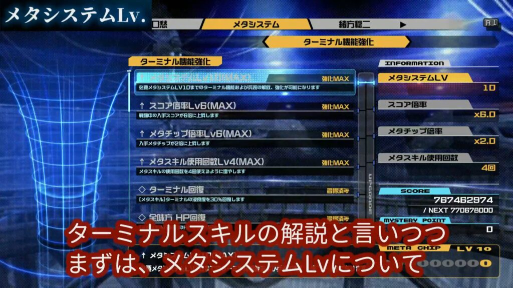 ターミナルスキルの解説と言いつつ、まずは「メタシステムLv」についてお話しします。