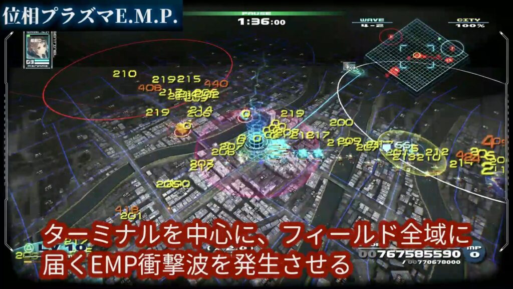 ターミナルを中心に、フィールド全域に届くEMP衝撃波を発生させます。
