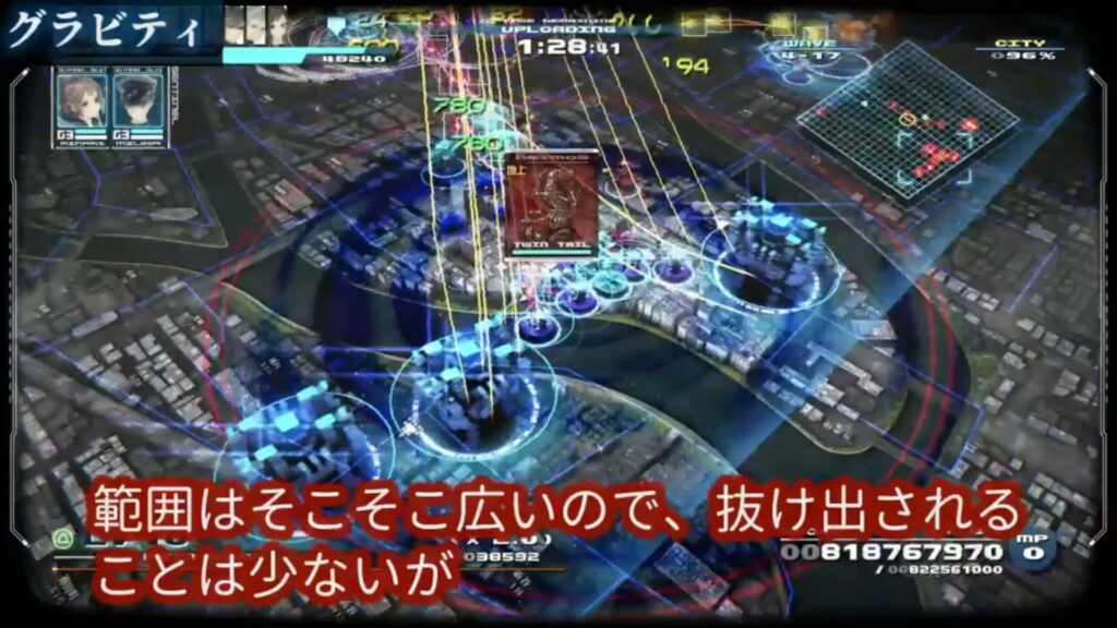 一部の範囲しか足止めできないのも困りますね。もちろんダメージもなく、スタンとか墜落もしないので、位相プラズマの下位互換だと思います。