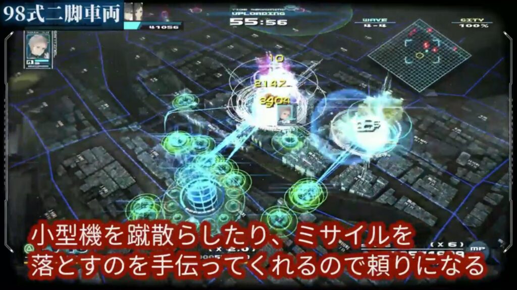 攻撃力に期待できないとは言いましたが、小型機を蹴散らしてくれたり、ミサイルを落とすのを手伝ってくれるので、意外と頼りになります。