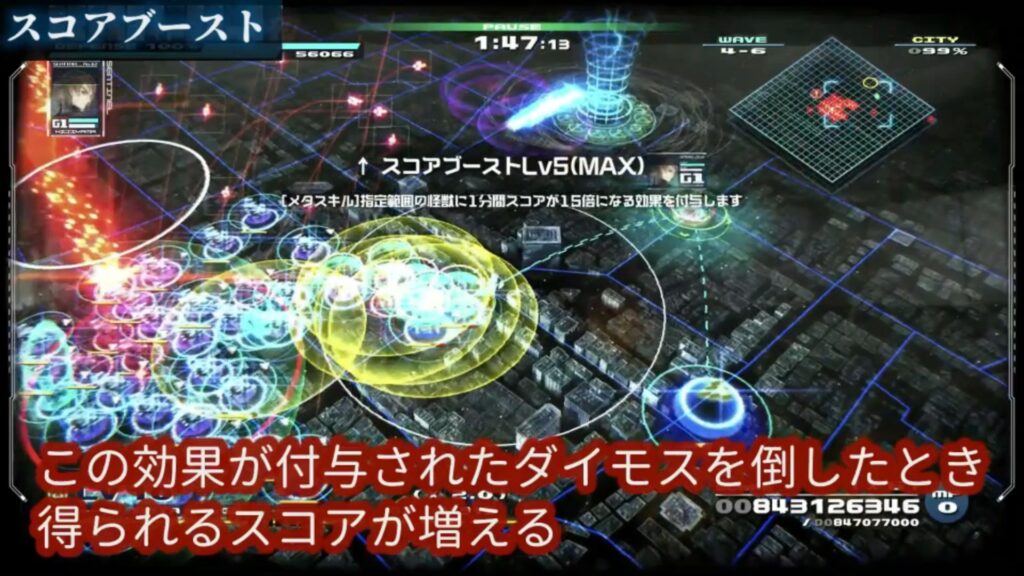 ただ、ストーリー攻略中は、これを使ってる余裕はあんまりないかと思います。難易度イージーで遊んでいて余裕がある方や、クリア後、もうターミナルスキルに頼らなくても良くなったら、スコアブーストを使っていきましょう。